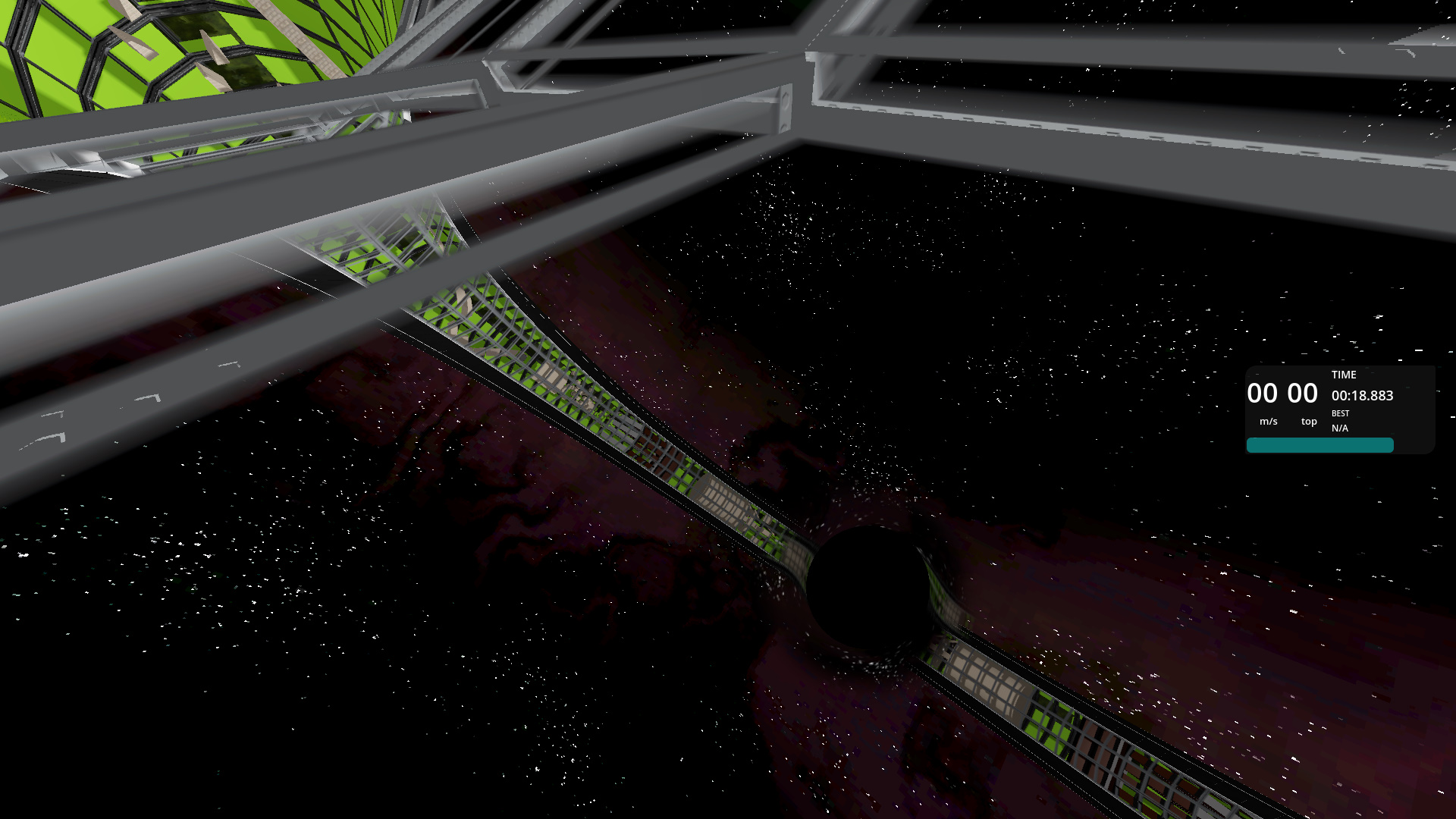 Fast paced, kinetically satisfying first person platformer, in which you try to loop around torus shaped cosmic station AND TIME to save your daughter. Move fast. Beat your bests. DON'T TOUCH GRASS. Good luck soldier!